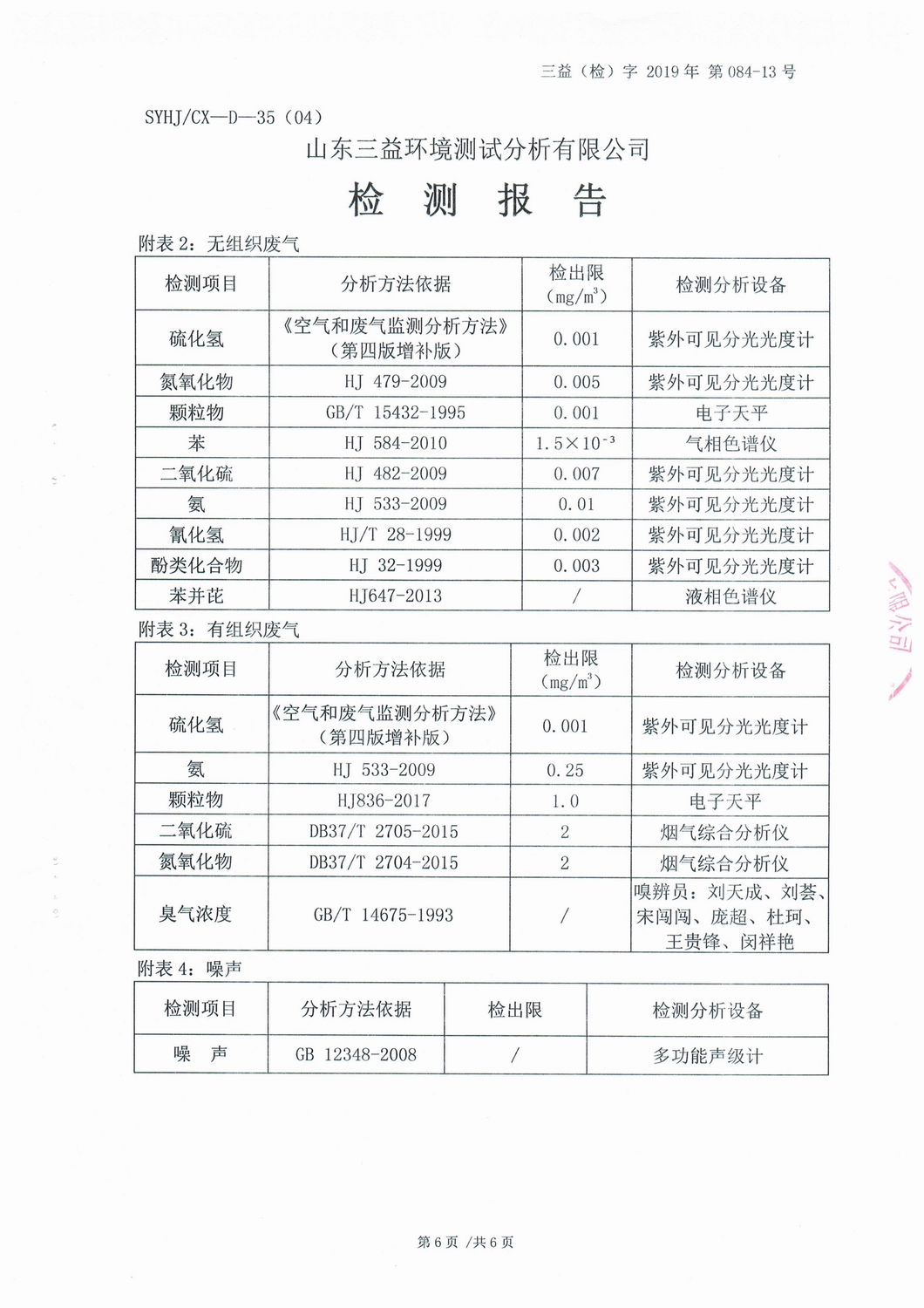 山東濰焦集團(tuán)薛城能源有限公司6月份檢測報告